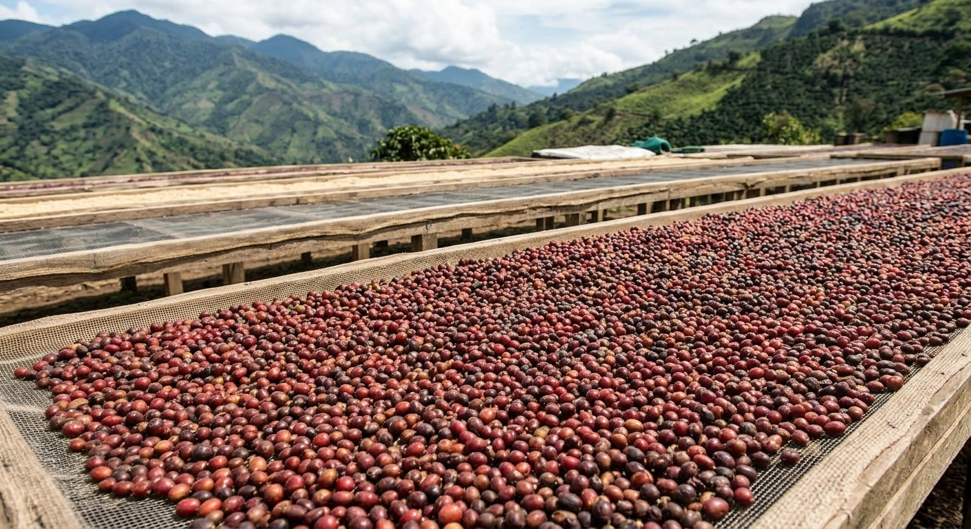 Une fois sélectionnées, les cerises sont généralement étalées en couches fines sur des lits africains surélevés ou sur des patios en béton, où elles sèchent lentement au soleil. Ce séchage demande une attention constante : les cerises sont régulièrement retournées afin d’assurer une déshydratation homogène et d’éviter les fermentations indésirables. La nuit, elles sont souvent recouvertes de bâches afin de les protéger de l’humidité et de la rosée.