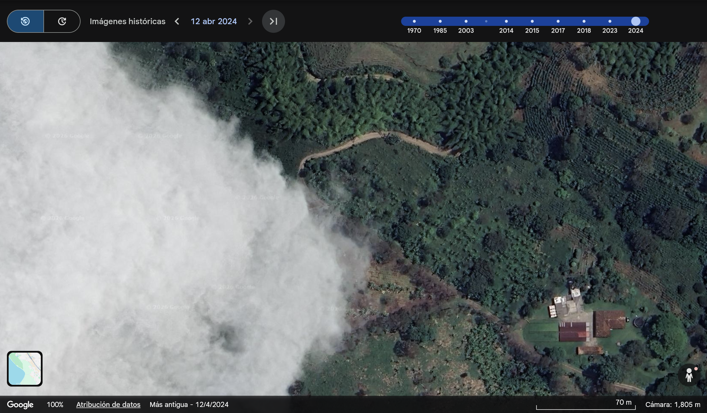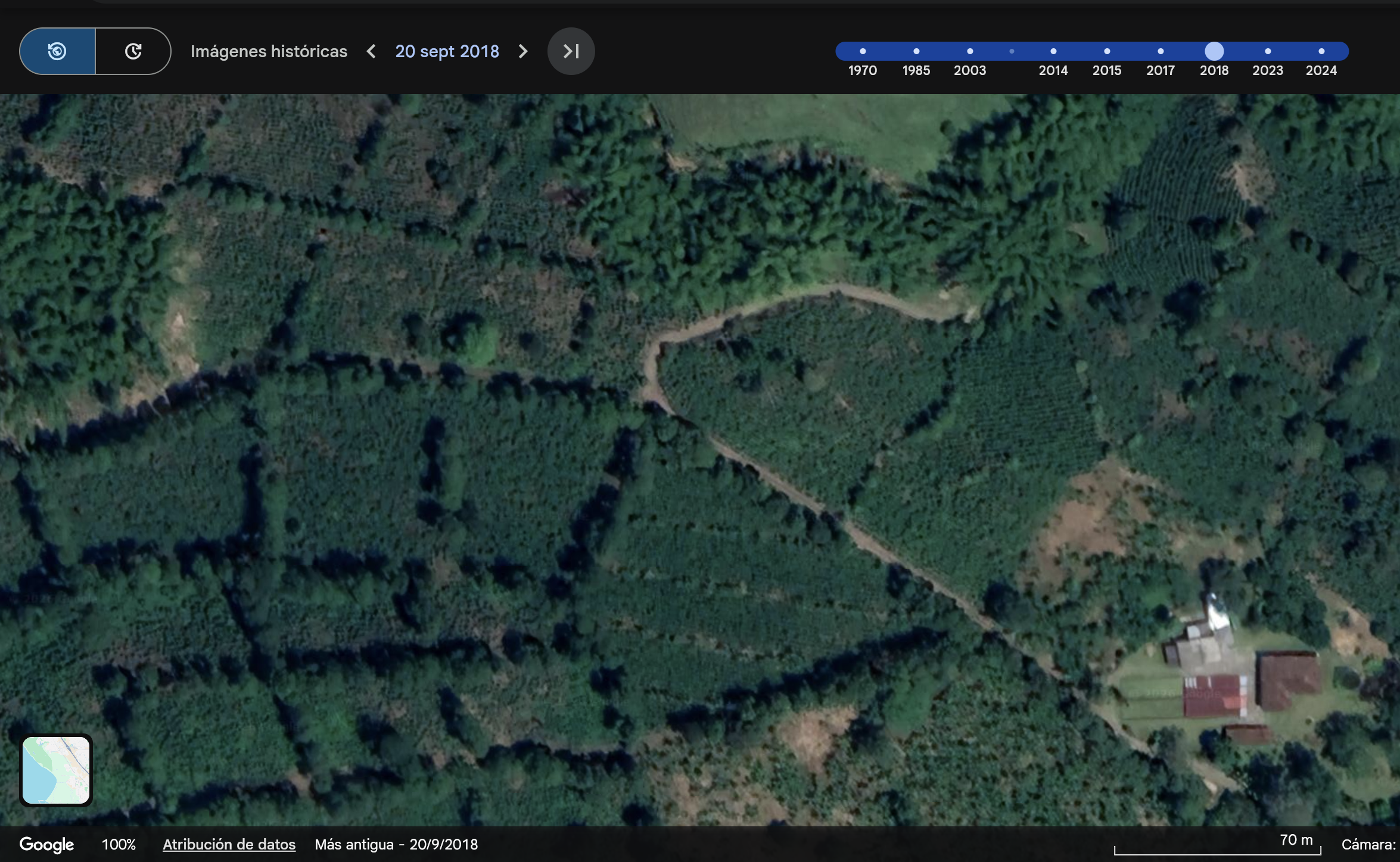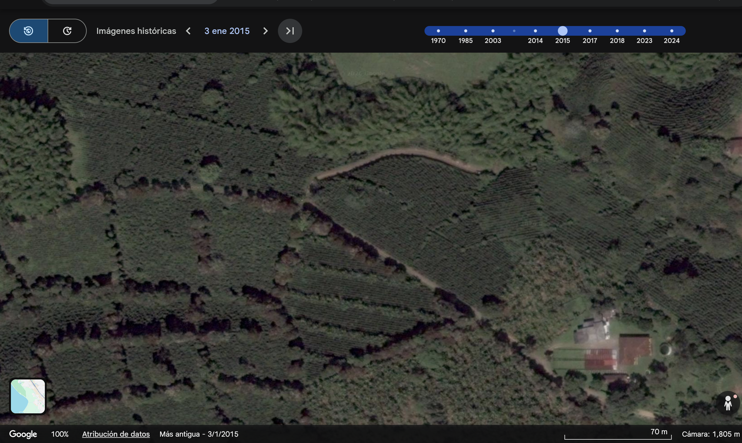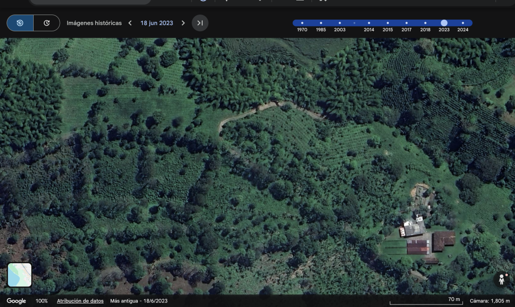 Cette démarche ne repose pas sur un simple certificat, mais sur une traçabilité rigoureuse et vivante. Chaque lot est lié à une parcelle précisément identifiée, dont nous connaissons les coordonnées, l’évolution dans le temps et l’histoire. À travers des images satellites, des archives et des témoignages, nous retraçons la vie de ces terres, souvent cultivées depuis des générations, sans rupture avec leur environnement naturel.